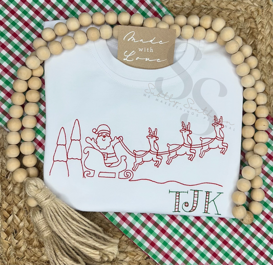 Santa and Reindeer Simple Line Shirt