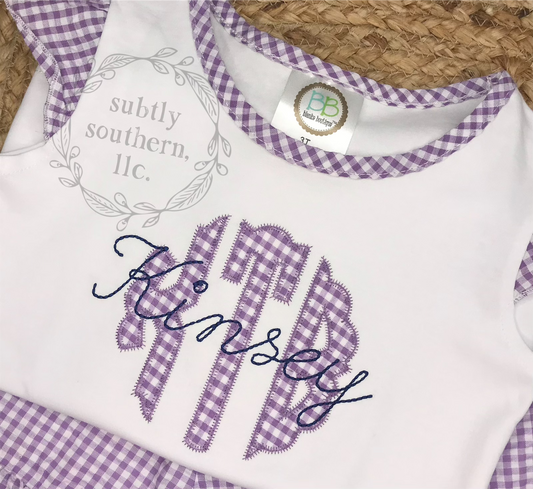Gingham Scallop Monogram Flutter Sleeve Top and Shorts