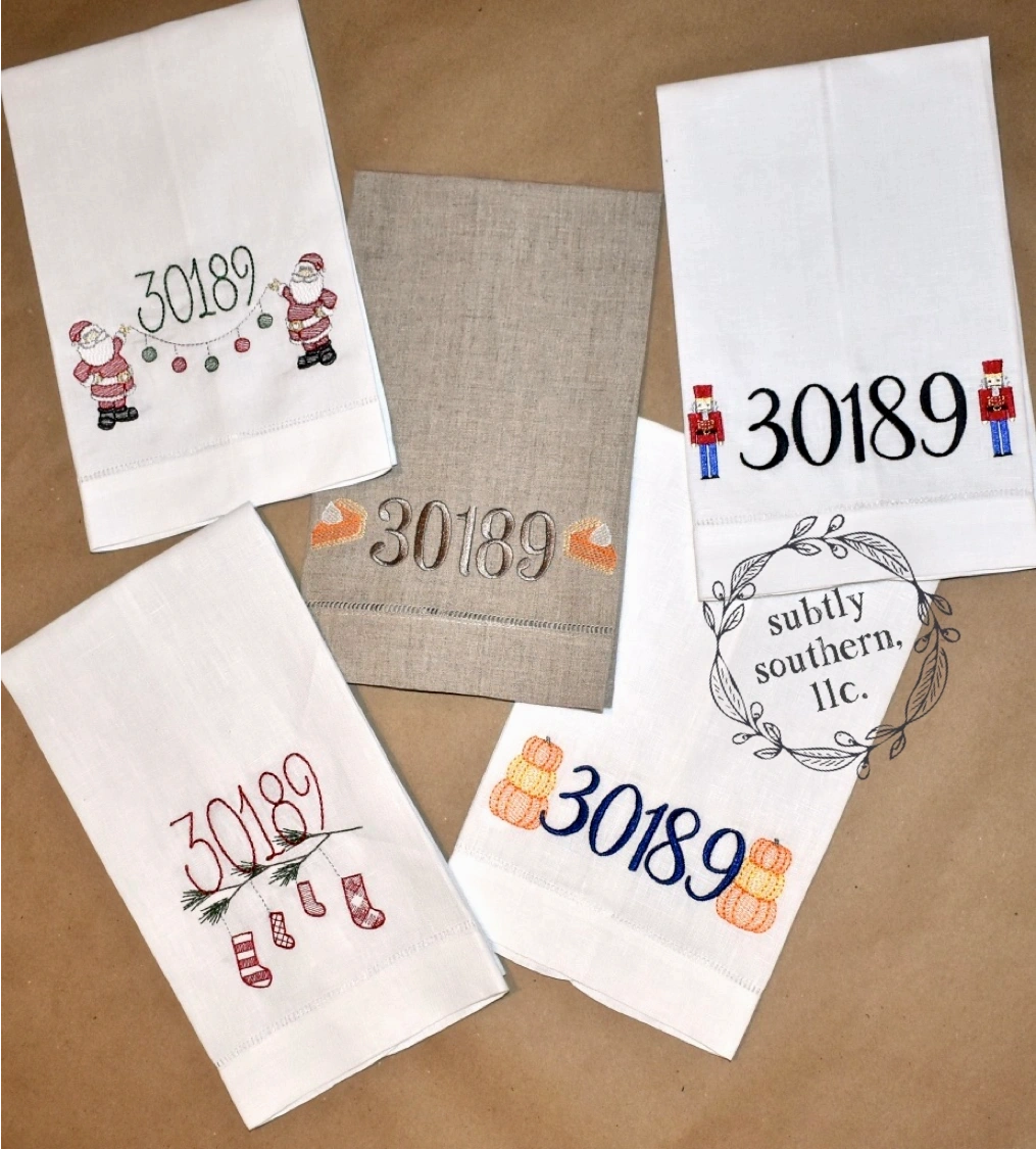 - Please Note: The thread colors and fonts shown will be used unless special requests are submitted. Any special font and/or thread color requests must be submitted during order process in the 'Special Requests' box. (see choices HERE)