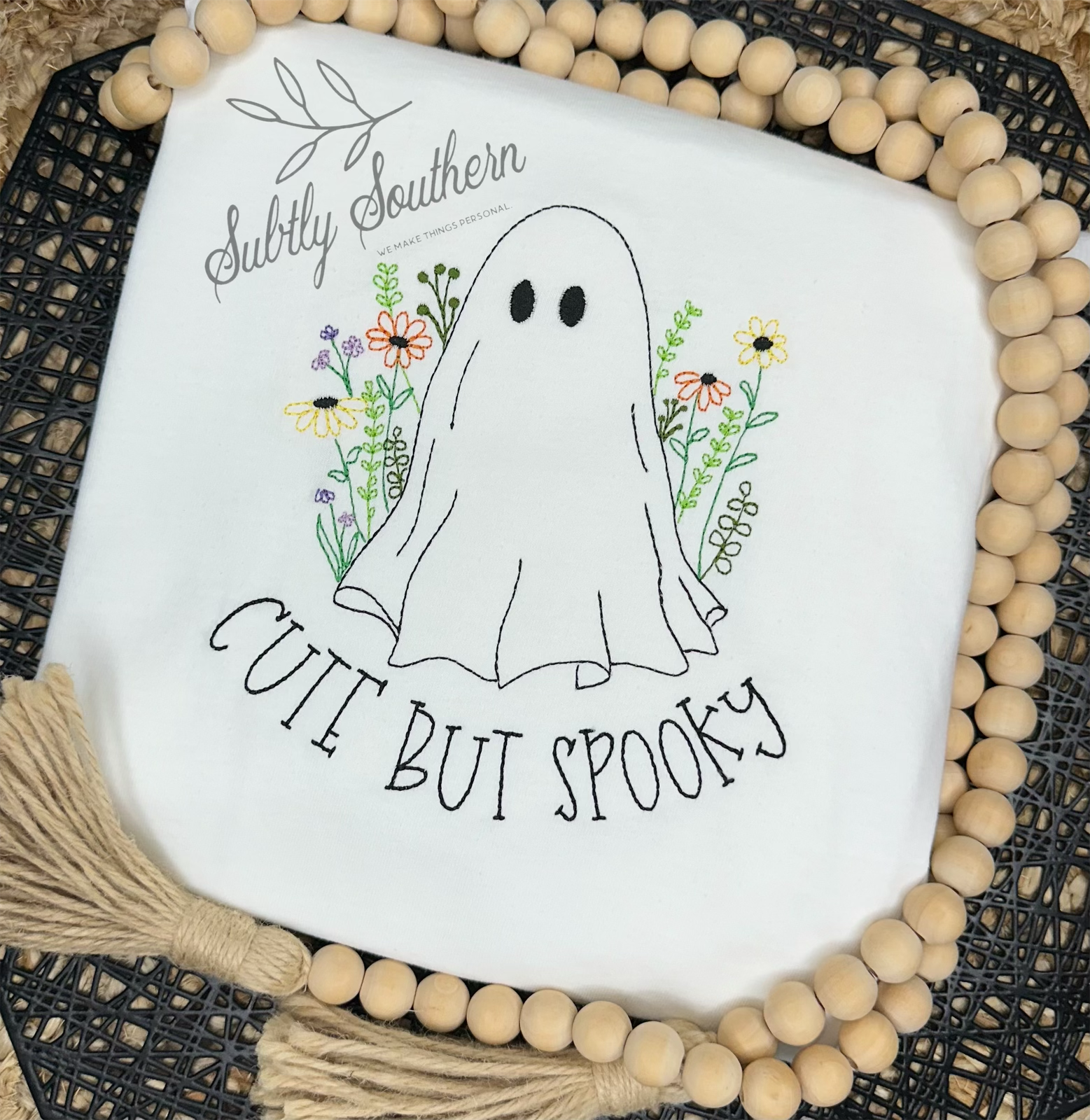 Show off your spooky style with this boo-tiful shirt! The perfect blend of Halloween ghouls and pretty petals, you’ll be the envy of all your ghoul friends!